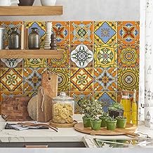 kina (72 pièces) Autocollants de Carreaux Taille 10x10 cm Fabriqué en Italie - PS00049 PVC Autocollants pour Salle de Bain et Cuisine Carreaux - Design Valence
