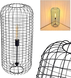 Lampe de bureau Cuyama en métal noir, lampe de table moderne avec interrupteur sur le câble, pour 1 ampoule E27 max. 60 Watt, compatible ampoules LED