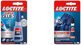Loctite Super Glue-3 Professionnel, Colle Liquide à Séchage Immédiat, Colle Transparente, Flacon de Colle 20 g inclut Loctite Détach'Glue, Dissolvant Colle qui Enlève Taches et Résidus de Colle