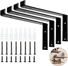 DIYH 4pcs Support D'étagère Mural Metal 25cm Noir Équerres Etagere Industrielle - Murale Fixation pour Etagere - avec Ferrures Métalliques Renforcées - pour Stockage De Garage